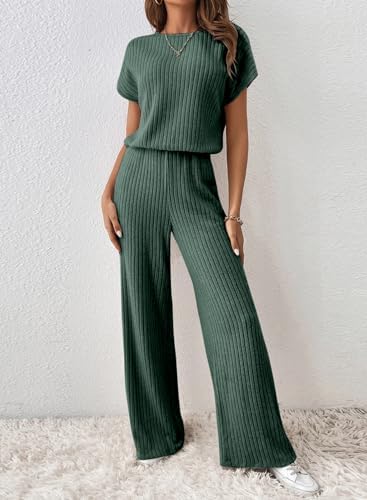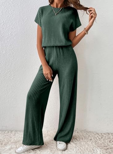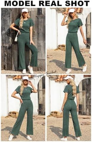 Women Ribbed Crewneck Long Pants Jumpsuits