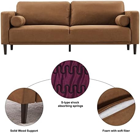 -- With its classic yet timeless brown tone and sleek, minimalist design, this 79" loveseat sofa anchors your space in mid-century modern style. Natural color variations, wrinkles and creases are part of the unique characteristics of this faux leather couch fabric that is built to withstand everyday wear and tear.