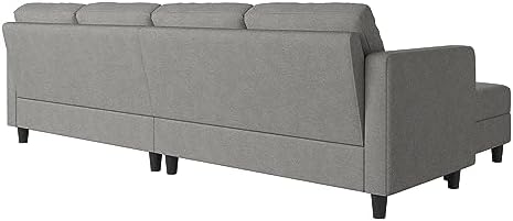 First of all I want to say that the customer service from this company is the BEST! I contacted them about an issue on the weekend and the response time was phenomenal.Pros for the sofa; the color is beautiful and the material is nice as well. The longer cushions are pretty comfortable and well made. The dogs fits well in a smaller living room and very versatile in the setting arrangement. It was easy to assemble and I put it together by myself in about 30 minutesThe cons;The smaller cushions are pretty wrinkled and do not seem to want to come back from being compressed for shipping. I don’t think the couch would hold up to a lot of weight or constant use. The frame is smaller wooden pieces that seem a bit flimsy. The cushions are a bit hard but are ok for me as I didn’t want a super soft couch that is hard to get up from.Overall the sofa is worth the price I paid.