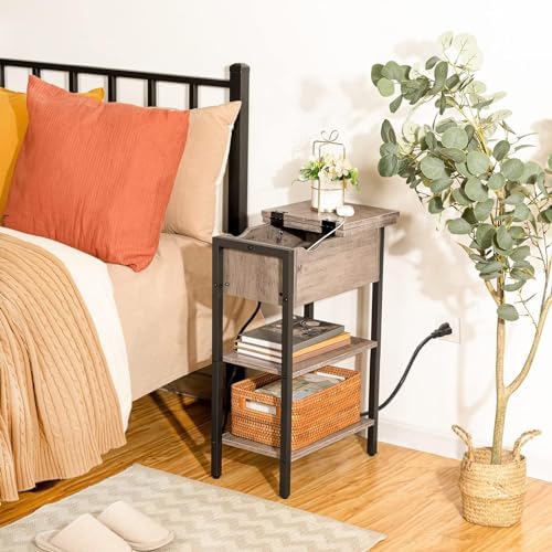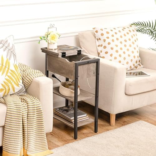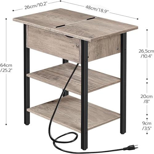 After looking for end tables to place beside our bed for some time we ended up settling on these.Measurements listed are exactly correct, which was a welcomed site. When the top is opened it is actually pretty spacious to place a book and charging cords inside. I also liked that there is a gap when closed to allow your charging cord out without pinching the cord.Instructions were pretty straight forward and easy to understand. Everything was numbered or lettered to easily point out each part from one another. It comes with a hex tool and the only other tool needed was a screw driver.The only reason this doesn't get 5 stars is because the appearance of the item leaves a bit to be desired. It's not ugly, but it just appears to be flimsy/weak. It holds things fine, just the look. This may also be caused by our decor which contains wide baseboards and crown molding, and a large bed frame. Maybe this product just looks flimsy in contrast.Regardless, for the price we are happy with the purchase and think in the future we could use them in a different room as well.