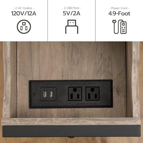 The end table includes two 3-hole sockets and 2 USB ports.