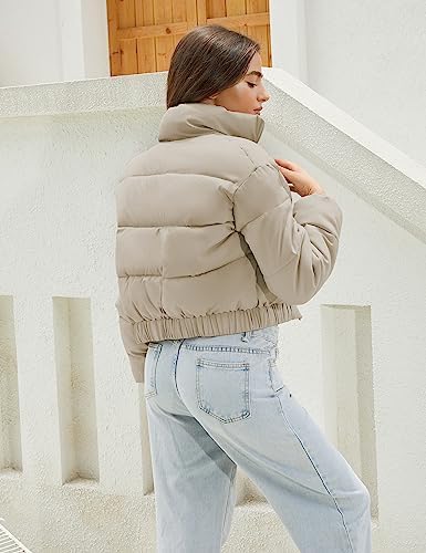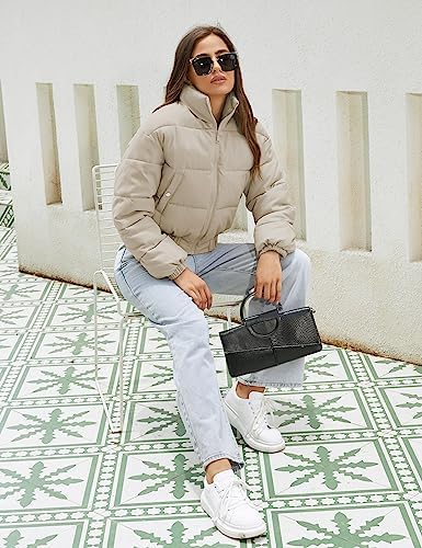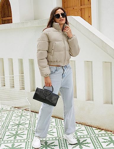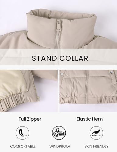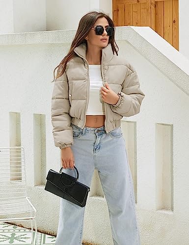 Hooever Women's Cropped Puff Jacket Winter Stand Collar Full Zipper Quilt Bubble Coat