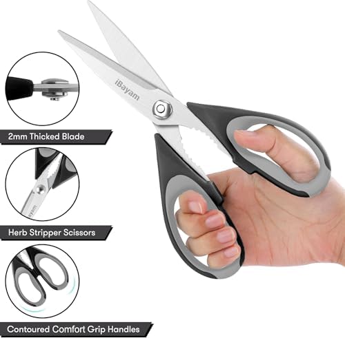 Kitchen Shears, iBayam Kitchen Scissors All Purpose Heavy Duty Meat Scissors Poultry Shears, Dishwasher Safe Food Cooking Scissors Stainless Steel Utility Scissors