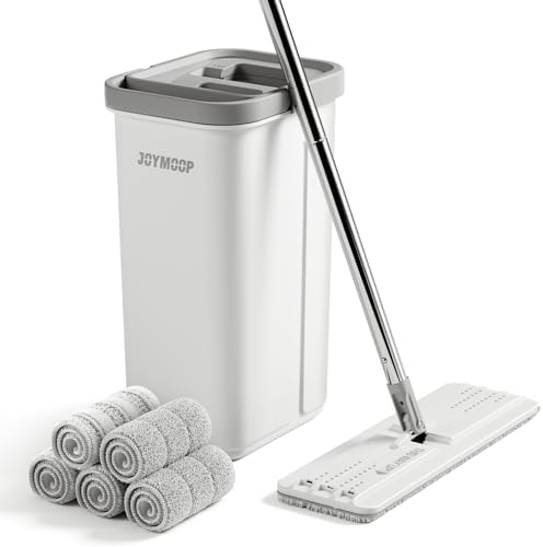 JOYMOOP Mop and Bucket with Wringer Set, Hands Free Flat Floor Mop and Bucket, with 5 Washable Microfiber Pads, Wet and Dry Use, Floor Cleaning System