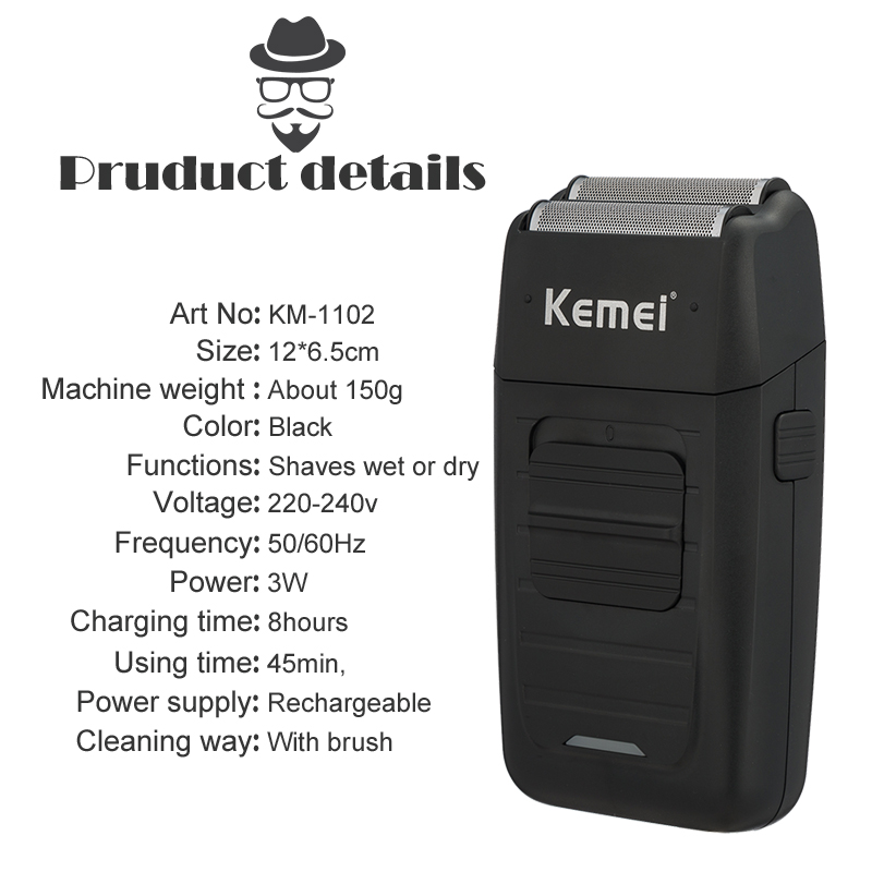 This product is a rechargeable shaver.Regular cleaning with cleaning brush is OK. This product has two floating razor heads ,individually reflex action system can always get close to the facial contour to effectively shave the hair of any lengths and in any growing directions.reasonable design & the cooperation of two blades will bring about better shaving effect.