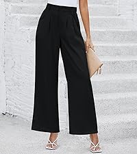 Business casual pants feature a high waist design, elasticized waist, and straight leg fit.
