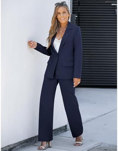 LookbookStore 2 Piece Pant Suits for Women Dressy Blazer High Waisted Straight Leg Pants Sets Business Casual Outfits