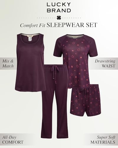 Lucky Brand Women's Pajama Set - 4 Piece T-Shirt, Tank Top, Pajama Pants, and Sleep Shorts are the perfect addition to your sleepwear collection. The lightweight and breathable fabric will feel amazingly smooth against your skin. Perfect also as loungewear while relaxing at home, you'll love to sleep and chill out wearing this adorable sleepwear set. COMFORTABLE SLEEPWEAR: Breathable and lightweight material of this pajama set will keep you comfortable throughout the night, making it your new favorite PJs. PAJAMA BOTTOMS: These soft pajamas will be your everyday go-to pajama bottoms. ECONOMICAL: This comfortable and lightweight pajama set comes in a variety of colors, giving you the perfect opportunity to stretch out your nightwear collection. EASY CARE: Simply machine wash and tumble dry; Please Reference the Variations for all Available Sizes and Colors. Lucky Brand Offers Premium Clothing because we value every customer that visits our listings. Stop by Our Storefront to See the Rest of Our Great Deals; we're confident you're going to find items that anyone who needs a gift will absolutely love and adore.