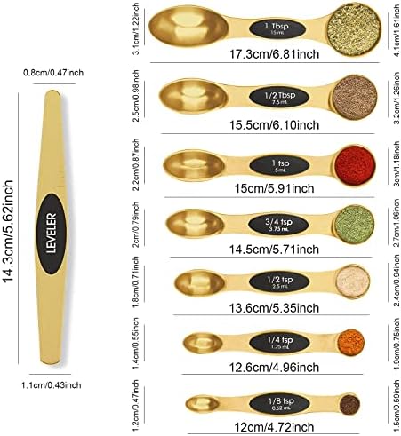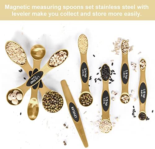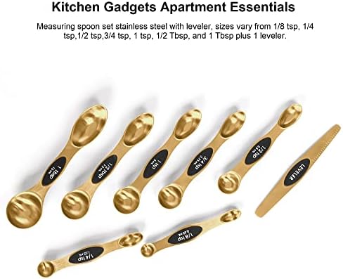 Home Essentials for New Home BIDFUL Magnetic Stainless Steel Measuring Spoons Set with Leveler, Easy to Read Teaspoon/Tablespoon and Measurements,features unique double-sided ktichen spoon heads for both dry and liquid ingredients.