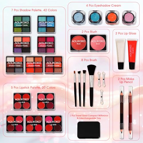 Makeup Kit for Teenager & Women Full Kit, All- In- One Makeup Set With The Cosmetic Train Case, Professional Makeup Kit, Makeup Gift Set for Women Girls(pink)