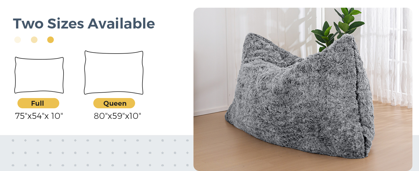 Good:Huge and well stuffed floor cushion/bedBig enough for large folks to jump and sprawl out onVery soft and comfyMixed/JFYI:To be honest, I cannibalized mine for the foam to fill a preferable cover, but the leftovers still make a nice floor cushion in front of our couch for lower tier seatingNot Great:Cover looks and feels like a shag carpet; soft but not the most comfortable or nice to look at