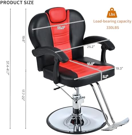 Merax, Red+Black Classic Reclining Barber Salon Chair, for Hair Stylist with Heavy Duty Hydraulic Pump, 360° Rotation, Tattoo Shampoo Beauty Equipment, 25.2D x 19.30W x 41.7H