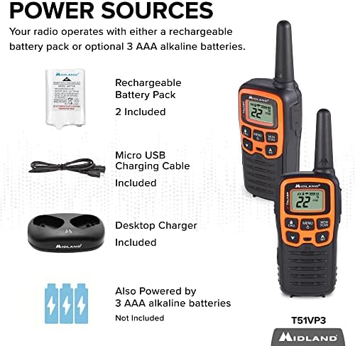 Midland- T51VP3 X-TALKER Spotting and Recovery Walkie-Talkie Long Range - FRS Two Way Radio for kids Caravanning with NOAA Weather Scan + Alert, 38 Privacy Codes - Black/Orange - 2 PackRecommendations
