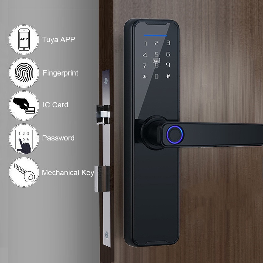 RAYKUBE Biometric Fingerprint Door Lock K7 Black Smart Lock Tuya App Remote Unlocking Keyless Lock Electronic Door Lock