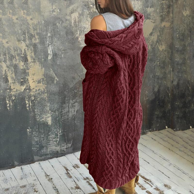NIUBIA Womens Casual Long Sleeve Open Cardigan Warm Hooded Outwear Coat Cable Knit Long Cardigan Sweaters with Pockets