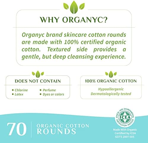 Organyc 100% Organic Cotton Rounds - Biodegradable Cotton, Chemical Free, For Sensitive Skin (70 Count) - Daily Cosmetics. Beauty and Personal Care