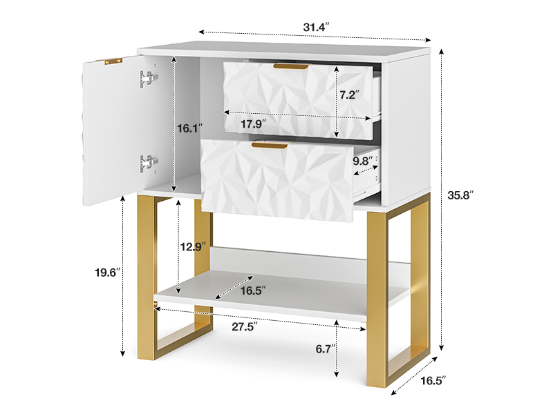 Equipped with excellent damper hinges, the cabinet door can be quiet when closed.