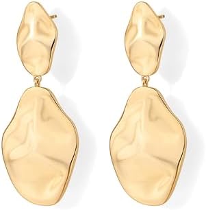 PAVOI 14K Gold Plated 925 Sterling Silver Posts Teardrop Statement Dangle Earrings | Lightweight Hammered Drop Dangle Earrings for Women