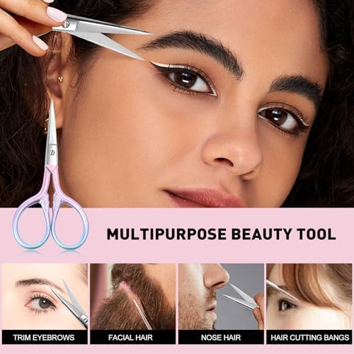 Personal Care Professional Beauty Tools (pink) Small scissors Facial hair removal and ear, nose and eyebrow, beard trimming Stainless steel fine straight head scissors