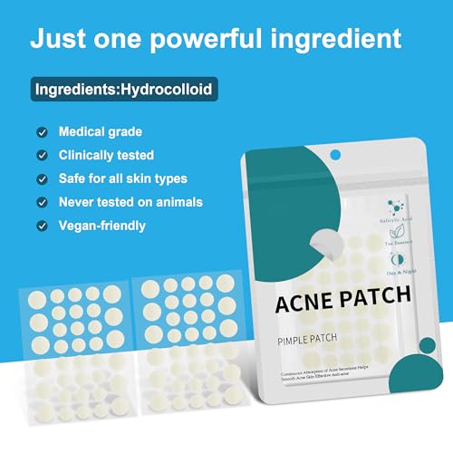 Pimple Patches for Face, Hydrocolloid Acne Patches, Zit Patches for Day and Night Invisible with Tea Tree, Salicylic Acid & Cica Oil-280 Patches,5 Size,2 Thickness