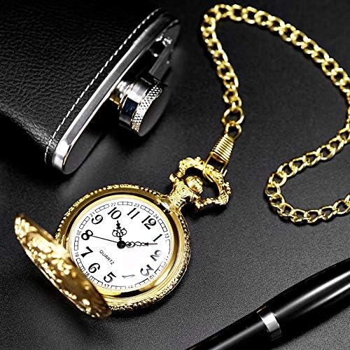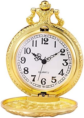 Features: 1.Vintage bronze pocket watch is the best gift for your family, seniority and your friends 2.100% brand new with excellent workmanship 3.Elegant design with precise quartz movement 4.Dial color in white with arabic numerals in Black could see time clearly 5.Removable key chain with a clip at the end, long necklace for wearing the pocket watch as pendant 6.Nice addition to a formal or casual dressing or collectingHow to use/set quartz pocket watch? Press the crown at the top of watch, the front plate will open. Pull the crown away from base of the watch and turn the crown clockwise until reaching the exact time. Specification (1 cm=10 mm=0.394 inch) (approximate) Case diameter: 47mm(1.85") approx. Case thickness: 14mm(0.55") approx.(cover included) Case Material: Alloy Chain Length: 360mm(14.17") approx. (hook included)Necklace Length: 80mm(31.52") approx. (hook included) Chain & Necklace Material: Alloy Package Included: -1 x Pocket Watch -1 x Gift Box1 x User Manual -1 x Chain1 x Necklace
