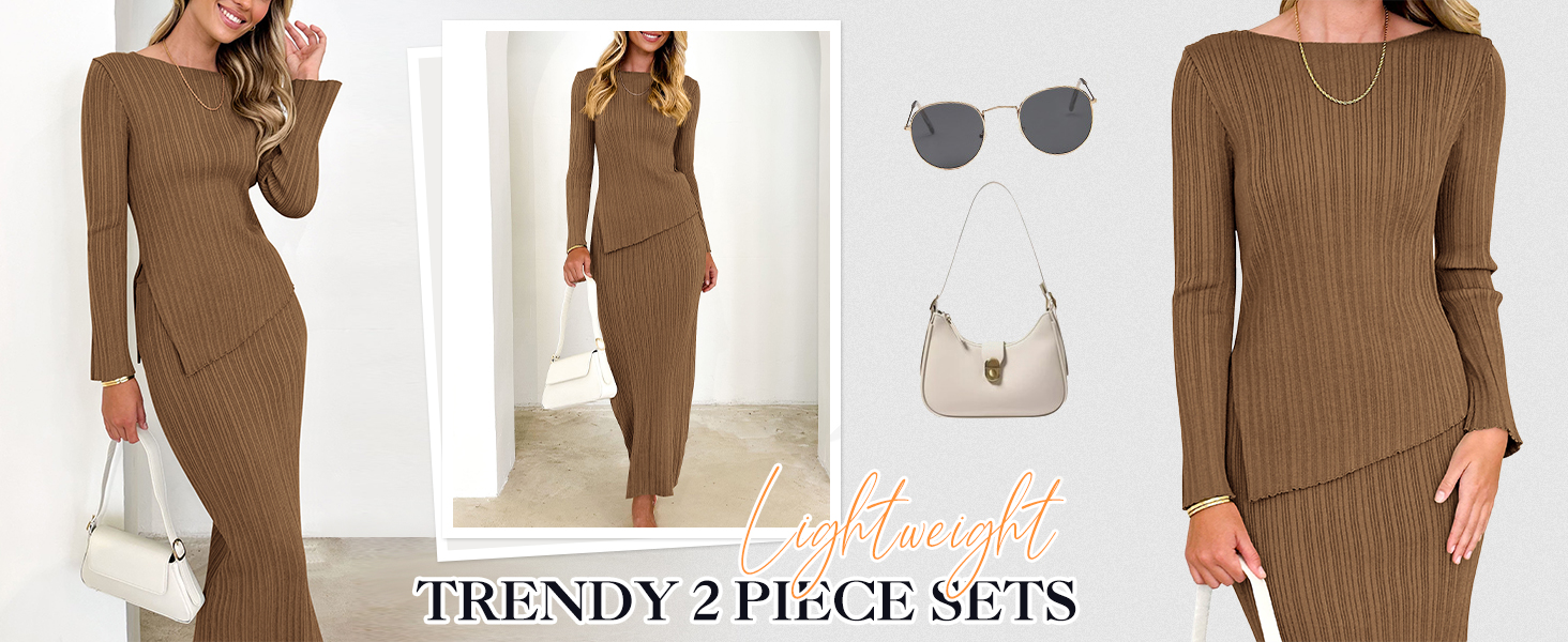 FEATURE: Long Sleeve Tops / Round Neck Shirts / Plain Outfits For Women / Y2K Sets / Elastic Waist Dress / High Waist Skirt / Bodycon Skirt Sets / Knit Sweater Sets / Slit Hem Blouses