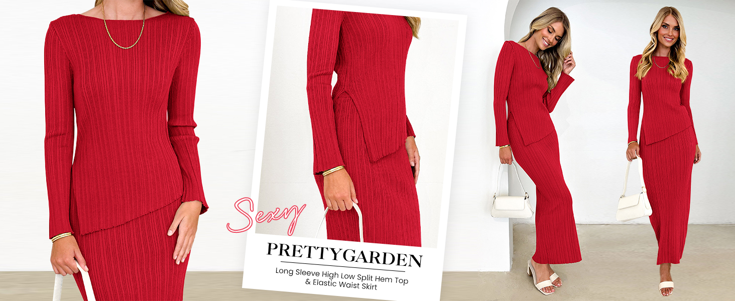 PRETTYGARDEN Ladies Fall 2 Piece Sets Sexy Plain Knit Sets Wedding Guest Outfits