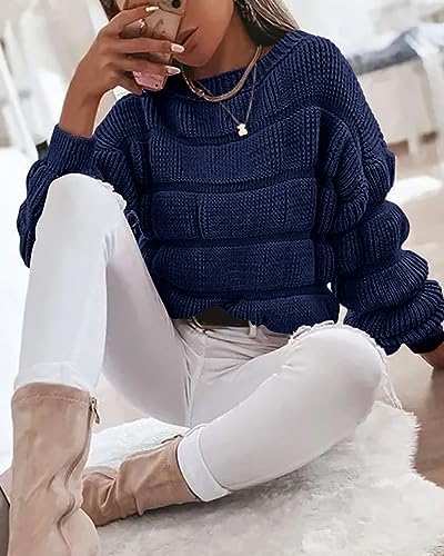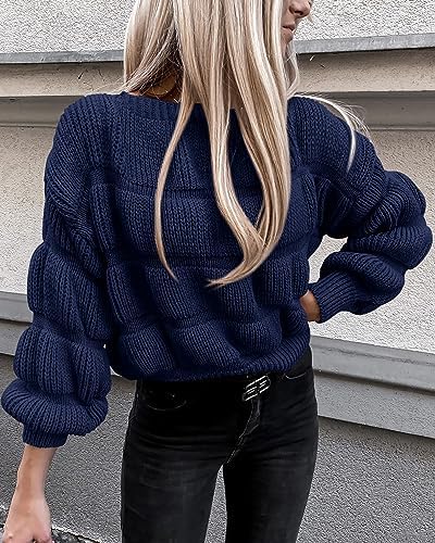 PRETTYGARDEN Women's 2024 Fall Sweaters Casual Crew Neck Pullover Long Puff Sleeve Loose Plain Chunky Knit Cute Blouse Tops
