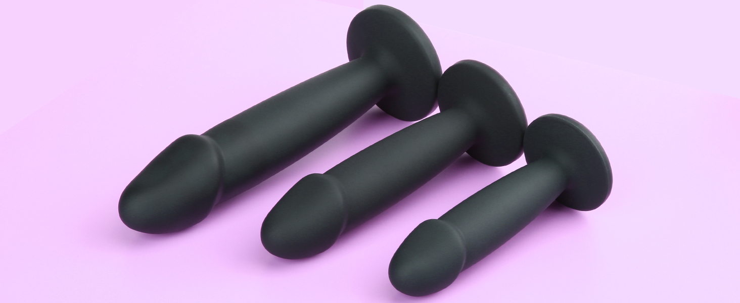 Love the set of three sizes for your comfort level and the suction cup base adds additional flexibility of where and how you can use them! Use plenty of water based lubricant!