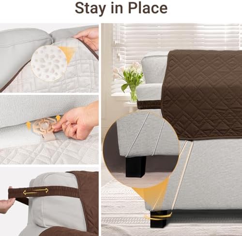 First off, my furbabies range from 68lb Husky to my 165lb Malamute... so these couch covers are not being delicately used....The couch & chair covers are being abused with daily doggy awesomeness! The covers are true to the measurements posted. My love seat has the middle piece so I purchased two large lazy boy chair covers to accommodate.These are easy to install,are soft, & comfortable to sit on.The material has withstood all 3 of my doggies, two teenagers, and general life.When I groom the dogs,brush the dogs,clip nails- is wherever they let me.These couch covers clean up exceptionally well. I use a silicone lint brush and I use a small dog brush with protection on the tips. I also vacuum them for cleaning.They have been a value when comparing cost to endurance.The material is soft.They are water resistant,not water proof! I purchased a second set so I can throw These in the washer and have a back up set!