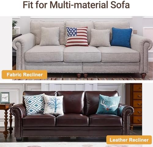 This fits my recliner well and stays in place. Waterproof so far, nice for keeping pet hair off the chair and toddler messes too. The only things I'm not a real fan of is the strap that goes around the back is very low on my chair and was quite snug indenting on my chair and my arm would rub on the bracket. I just took it off and it seems to stay in place well. The "rope" to tie down the cover in back looks tacky so I also left that one off. Otherwise I'm happy with my purchase.