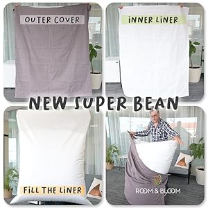 Manufactured to provide a wonderful blend of comfort with usability, the Super Bean gives you great options; When looking to upgrade, change color, use extra comforters, bean bag beans or memory foam. The Super Bean also allows you to remove and wash the cover like a piece of clothing.