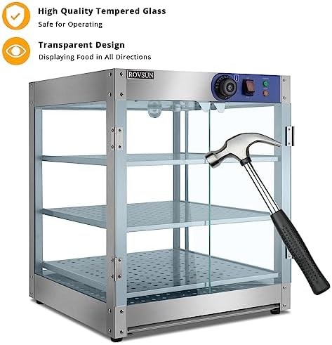 The ROVSUN Commercial Food Warmer Display is perfect for daily and commercial use. Stainless steel material ensures food security and safeguard your health. Removable trays make it easy to display food and clean. Temperature can be adjusted between 86-185℉/30-85℃, keeping dishes warm at your ideal temp. So what are you waiting for? Just take it home!