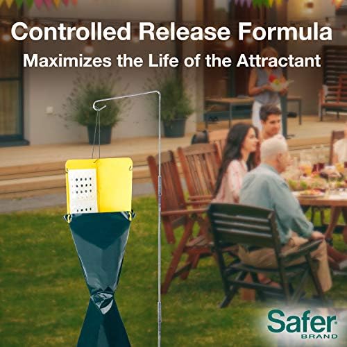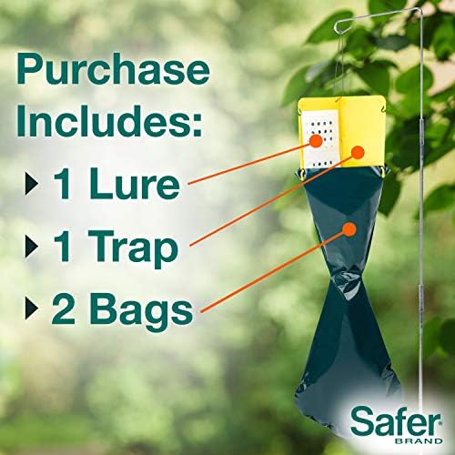The Safer Brand Japanese Beetle Trap uses a food and sex attractant to lure insects into the trap and disrupt the mating cycle. A controlled release system maximizes the life of the attractant and protects the attractant from environmental degradation. Comes with 1 trap, 1 lure, and 2 jumbo bags. Place this natural pest control trap at least 10 ft. away from plantings to prevent defoliation.