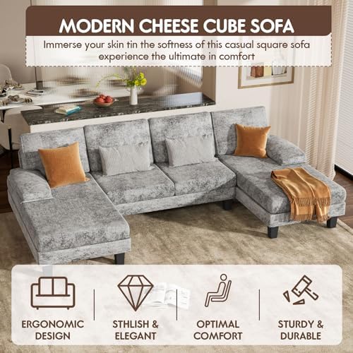 Shahoo U-Shaped Sofa Feature: Shahoo Sectional Couch Living Room Sets, Chenille Fabric U-Shaped Sofa with Double Chaises, Dark Gray. Specification Color: Dark Gray Material: Wood, Chenille Fabric, etc Package Dimensions:110"(L) x 44.1"(W) x 33.4"(H) Package includes: A sofa A tool kit A manual of installation and usage Notice: There may be some differences between photos and items in term of color because the influence of lighting during the shooting or the settings of the computers’ display screen.