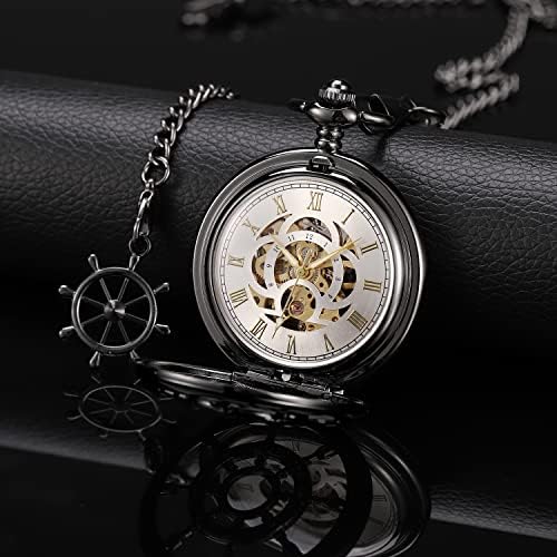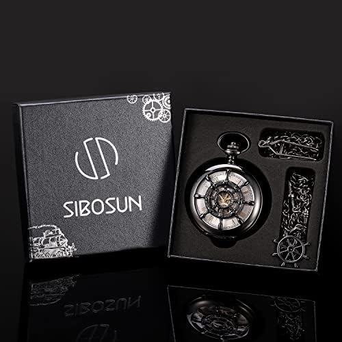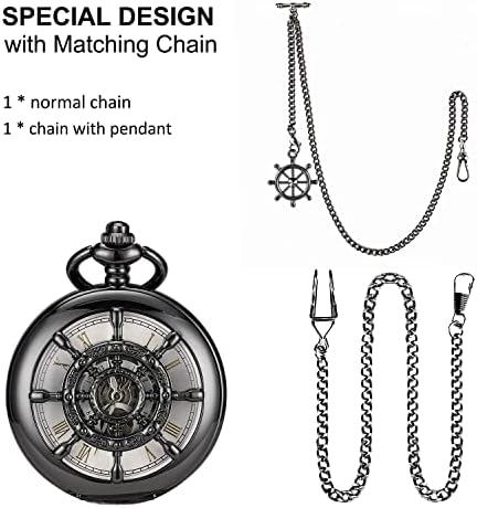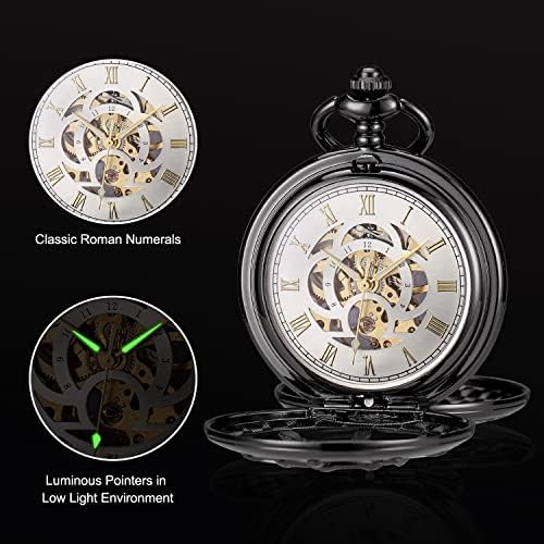 Beautiful watch and box. It is exactly as shown in picture, I would say it's even slightly better than the photo.I'm so glad we got the box to go with the watch. The box even come in a really nice box to wrap. It comes with a felt bag that holds the pocket chain. There is also a lint cloth packaged with it hor cleaning the pocket watch. We ordered this as a gift for our teen age daughter.You will want to leave the box open due to the wood box smells freshly lacquered.Air it out for a few days before you wrap it, if you are giving it as a gift