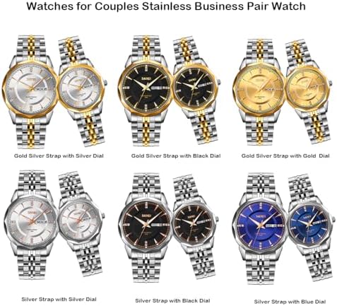SKMEI Pair Watches for Couples Men and Women His and Hers Watch Set Husband Wife Valentines Matching Wrist Watch Wedding Gifts Waterproof Business Fashion Quartz Analog Calendar