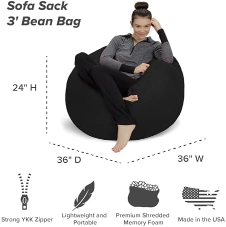 The Perfect Chair For Little Kids, Big Kids, and Adults That Are Kids At HeartA retro staple with a modern twist, this supersoft bedroom, dorm, playroom, and nursery accessory is both stylish and fun. A throwback to the 60’s, the Sofa Sack hippy bean bags embrace the laid-back attitude of an earlier time. With a sturdy yet very comfortable structure of memory foam stuffing, double-stitched passion suede, and an assortment of colors and sizes for the choosing, this versatile line of boys, girls and teenage room furnishings is the perfect addition to your home. Great for reading, watching movies, playing videos games, or just lounging, the Sofa Sack bean bag collection is a must for every room. They are also great for daycares, classrooms, preschools, libraries, and study rooms. At 3’ around, this fun bean bag is the perfect one-man seat.