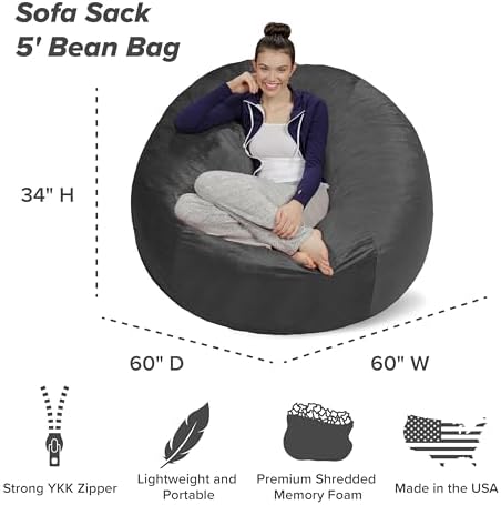 Bought this around the new year of 2021. Got it for 87 bucks or so. Looks like it’s about 120-150 normally depending on the color. Mine is a dark warm grey. It’s very heavy when shipped. It weighs at least 50lbs in a box. Keep that in mind when dragging it around or shipping it.My honest review is that my wife and family were impressed. The size, once expanded, is like a love sack. It has a nice double zipper then it’s filled with foam. I’m about 6’ 187lbs and it’s very comfortable for me, and I could cuddle with my wife in it. Two kids should be very comfortable to sit in the 5’ sack and game next to each other. That’s one thing I’ll say, it’s a very wide footprint. My daughter and I will pick it up and toss it and drop it to fluff it up. She will jump off the bed and land on it. It’s well made.Now I’ve bought a foam bag and they are fine, this one is supposed to be memory foam. It takes at least 2 days for it to relax. Probably more like 4. It’s super heavy as I mentioned when shipped and is a giant foam block. You may be tempted to open it to help it spread the foam. Just break it up without opening the cover. It’ll expand, don’t worry. I did it in chunks and then would pick it up and drop it, flip it, over the next few days.My youngest daughter said it smelled a little. We’ve got several memory foam beds and it’s typical. This one isn’t as bad as most off the off gassing from the beds. Just let it air out and it will be fine from our experience.The comfort of this thing is great. Personally your not going to notice the memory foam comfort like a mattress because the chunks are small. It’s not that type of experience, yet it’s comfortable. It’s definitely not stiff like my standard foam bag. This is much more like a Luv Sac brand. Very wide and comfortable. A good napping sac. Almost too good to act as an upright chair for an adult.I’m pretty darn happy with the price. Even at 120 or 150, I’d be very happy with it. The material and double zipper feels well made and it feels well branded. Doesn’t feel discounted. Two of these in a 12 x 12 room would be fun but I’d advise it would be too much. Also I’ll add these are a bit awkward to drag around. I’ve got a three story house and I would suggest getting the sac to where it should be. Great for a rec room at 5’.I believe there also isn’t an inner bag. I think, but not sure. Cover would be washable but you’d have to pull the foam out. There’s some unboxing videos with this brand online or on YouTube.