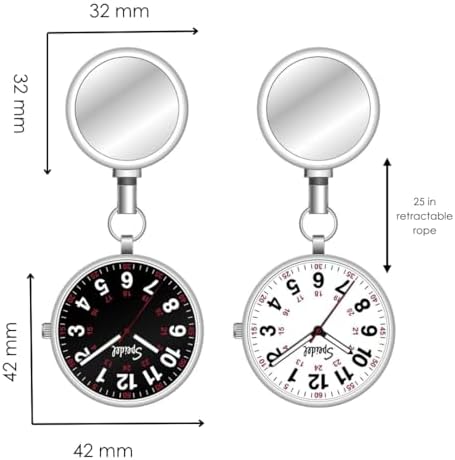 Speidel Nurse Fob Scrub Watch for Medical Professionals, Clip on Watch with Second Hand, Easy to Read, Retractable Rope