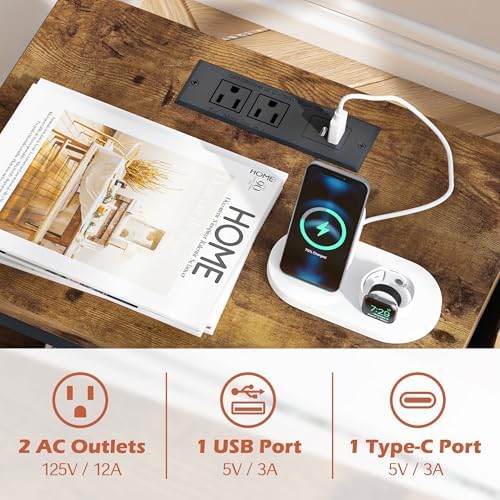 Got this for my husband. It is small so if you need a bigger size nightstand this isn’t for you. If you just need a place to set a drink, book and charge your stuff this works great. There is room for a little lamp as well. It took 20 min to put together and I did it myself. It has everything with it to put it together. It is sturdy and he loves it. The charging part works really well as well