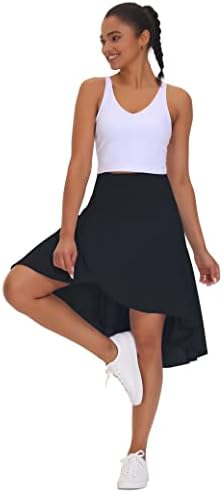 THE GYM PEOPLE Women's High Waist Wrap Ruffle Hem Asymmetric Skort High Low Flowy Midi Skirt with Shorts