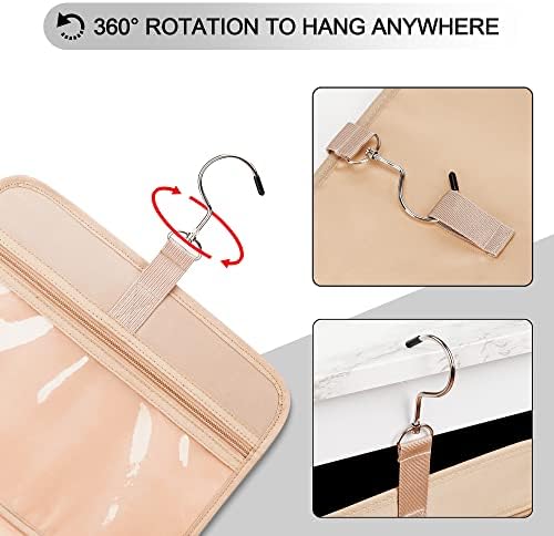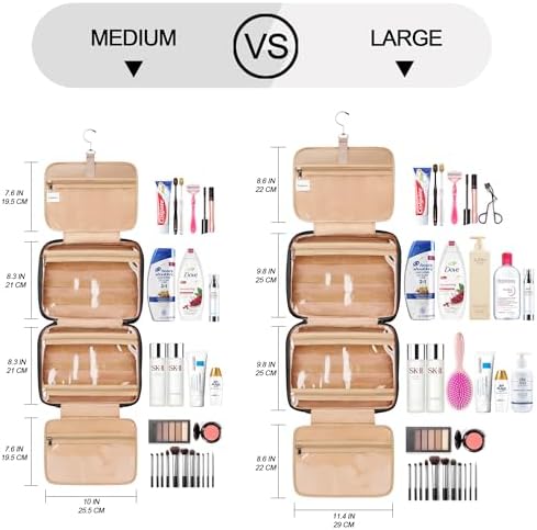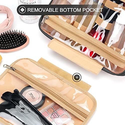 Travel Hanging Toiletry Bag for Women, Holds Full-Size Shampoo, with Jewelry Organizer Compartment, Extra Large Makeup Bag, Waterproof Cosmetic Bag, Toiletries Kit Set with Trolley Belt, Black