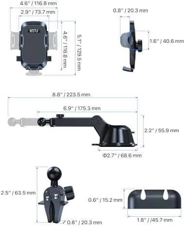 0.79" clamp arm depth with silicone airbag for stronger grip, better protection. The car phone holder mount.
