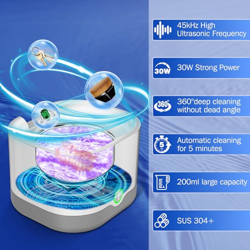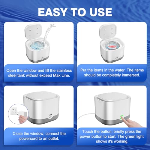 I must say, it's exceeded my expectations! This little powerhouse has transformed the way I clean my dental appliances and precious gems.Firstly, the design is sleek and compact, fitting perfectly on my bathroom countertop without taking up too much space. The operation is incredibly simple; just fill it with water and add a drop of cleaning solution, then let the ultrasonic waves work their magic.I've been amazed at how effectively it removes stubborn stains and buildup from dentures. After just one cycle, they come out looking and feeling as good as new, with no need for scrubbing or soaking.But the real surprise came when I tried it on my jewelry. I've always struggled to keep my rings and necklaces looking shiny, but this cleaner has made it effortless. Even intricate pieces with tiny crevices are thoroughly cleaned in a matter of minutes, restoring their brilliance.In terms of noise level, it's surprisingly quiet considering its powerful cleaning capabilities. I can run it in the background while getting ready in the morning without any disruption.Overall, I can't recommend this Ultrasonic Cleaner enough. It's efficient, easy to use, and delivers exceptional results every time. Say goodbye to tedious cleaning routines – this little gem does all the hard work for you!