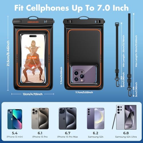 UNBREAKcable Waterproof Phone Pouch 2 Pack - IPX8 Floating Waterproof Phone Case Dry Bag for iPhone 15 14 Pro 13 13 Pro Max 12 11 XR XS SE 2022/2020, Samsung S24 S23 S22 S21 FE, Up to 7.0 inch- BlackRecommendations