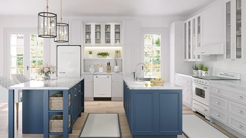 The Classic Retro Built-In Dishwasher by Unique Appliances is a seamless solution to the hassle of cleaning up after meals. With its top control panel, audible end-of-cycle signal (on/off), and an array of wash cycles including Heavy, Auto, Normal, Delicate, Quick, and Rinse, along with options like Sanitize, Hi-Temp, Heated Dry, Extended Dry, and Delay Wash 2-4-8 Hours, this dishwasher offers tailored efficiency. Despite the design of our dishwasher machine, which features a third-level utensil rack, height-adjustable second rack, modular utensil basket, and stainless steel tub, it can accommodate up to 14 place settings to maximize the load. Operating at a quiet 45 dBA, our dishwasher ensures uninterrupted tranquility, even during hard-food disposal. The iconic retro design of the dishwasher, complemented by chrome-finished accents, evokes a '50s charm. There is also LED lighting in the interior. A perfect marriage of functionality and aesthetics, this is one of the best built-in dishwashers you will come across. Pair with a Classic Retro Fridge or Range by Unique Appliances to add the finishing touch to your kitchen decor!