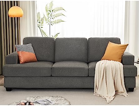We needed a new couch but weren’t ready to invest in a longer term, more expensive one. After lots of searching, took the plunge and bought this one. It arrived quickly and in one very large box. Assembly was super easy - it took the two of us maybe 30 minutes, and I probably could have even done it myself. The cushions do take a little bit to expand to their full size, but once they do, the end result is a very comfy couch!The overall look is pretty nice - if inspected closely, you can tell it’s not a high end piece of furniture, but it still looks good. It seems pretty sturdy for its intended purpose, but if you have rowdy kids or like to jump on furniture yourself, I would look elsewhere, since the frame isn’t made from solid wood. The only issue we’ve had is with the chenille fabric not being a great choice with having a dog (his nails have snagged on it more than a few times), but that is more our fault than the couch. All in all, we are happy with the couch, especially for the price.