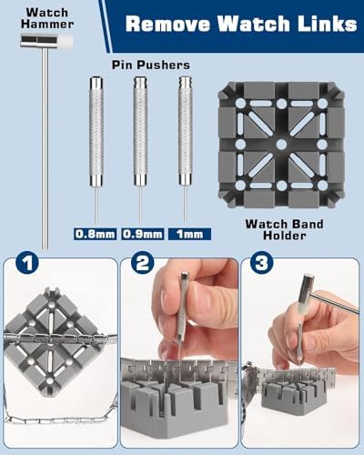 Perfect set for very common tasks like opening watch backs, watchband adjustment, changing watch batteries, gaskets, adjusting bands, and more.