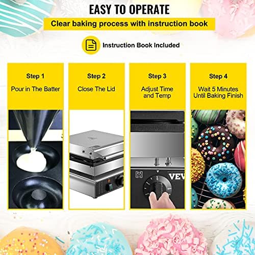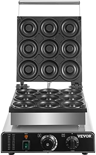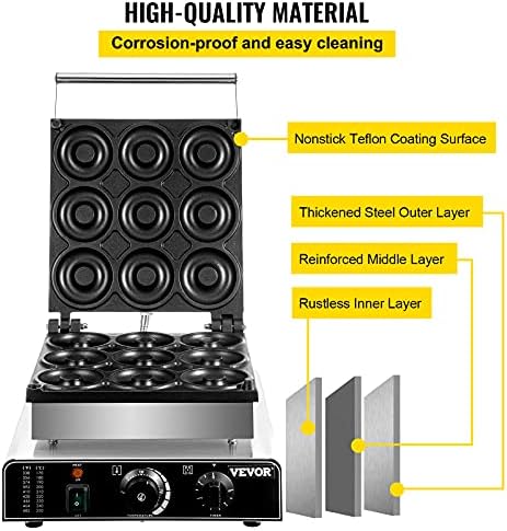 Electric Donut Maker, 9 Holes Commercial Donut Machine, 2000W Electric Doughnut Machine, Double-Sided Heating Commercial Donut Maker, for Home & Commercial Use with Non-stick Teflon Coating